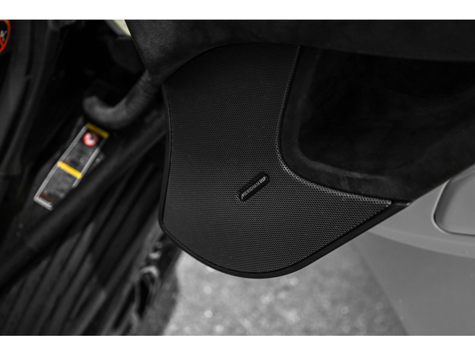 À l'intérieur, l'habitacle est entièrement recouvert d'Alcantara noir avec coutures contrastées en fil orange. A cela s'ajoute usage extensif de la fibre de carbone et une finition noir brillante sur les aérateurs, le bloc d'instruments et les diverses commandes du panneau Active Dynamics. Une plaquette personnalisée "Concours d'Élégance Chantilly" est présente sur la porte côté conducteur.