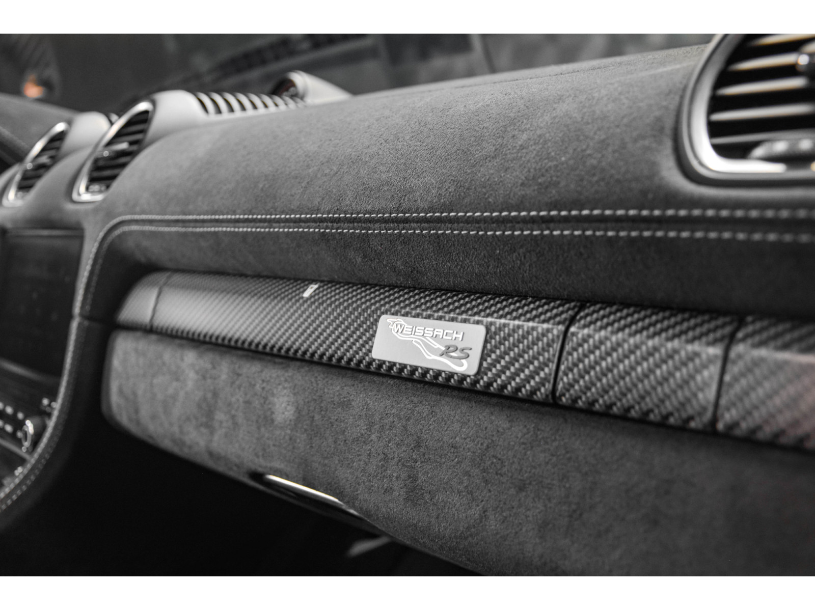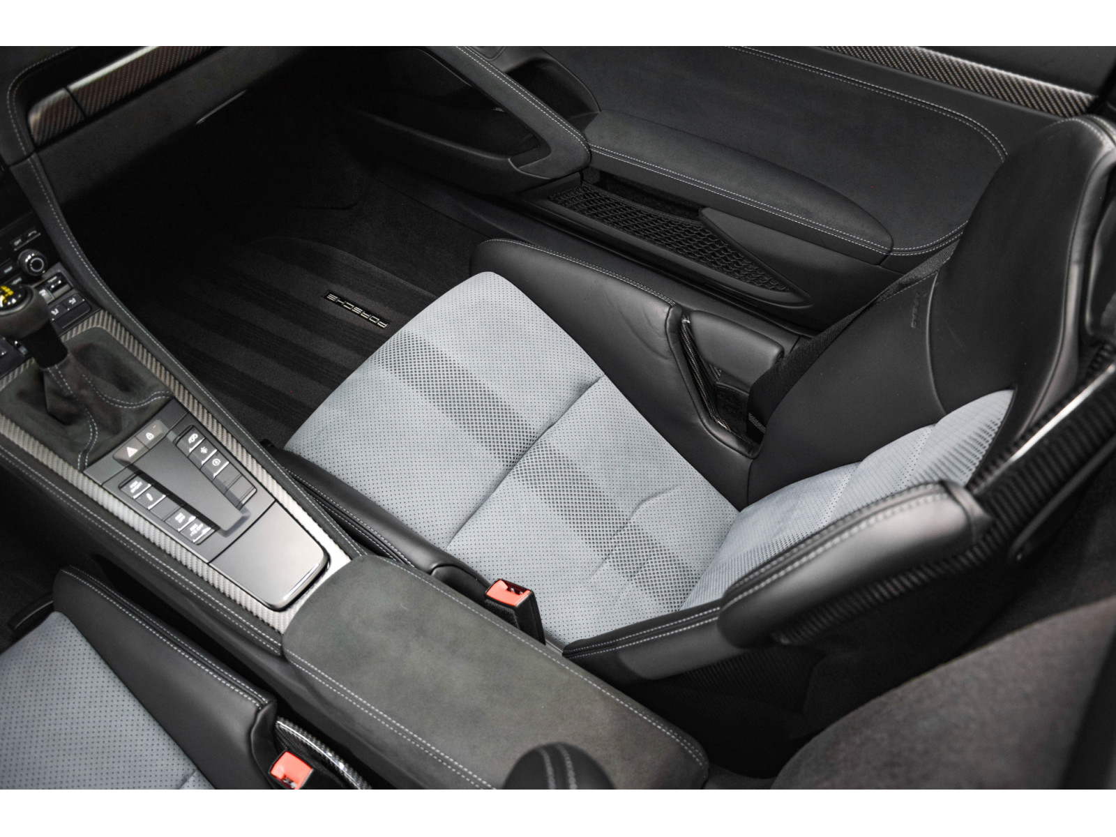 XLJ Ecusson Porsche sur l'accoudoir de la console centraleen Race-Tex - Porsche Exclusive Manufaktur