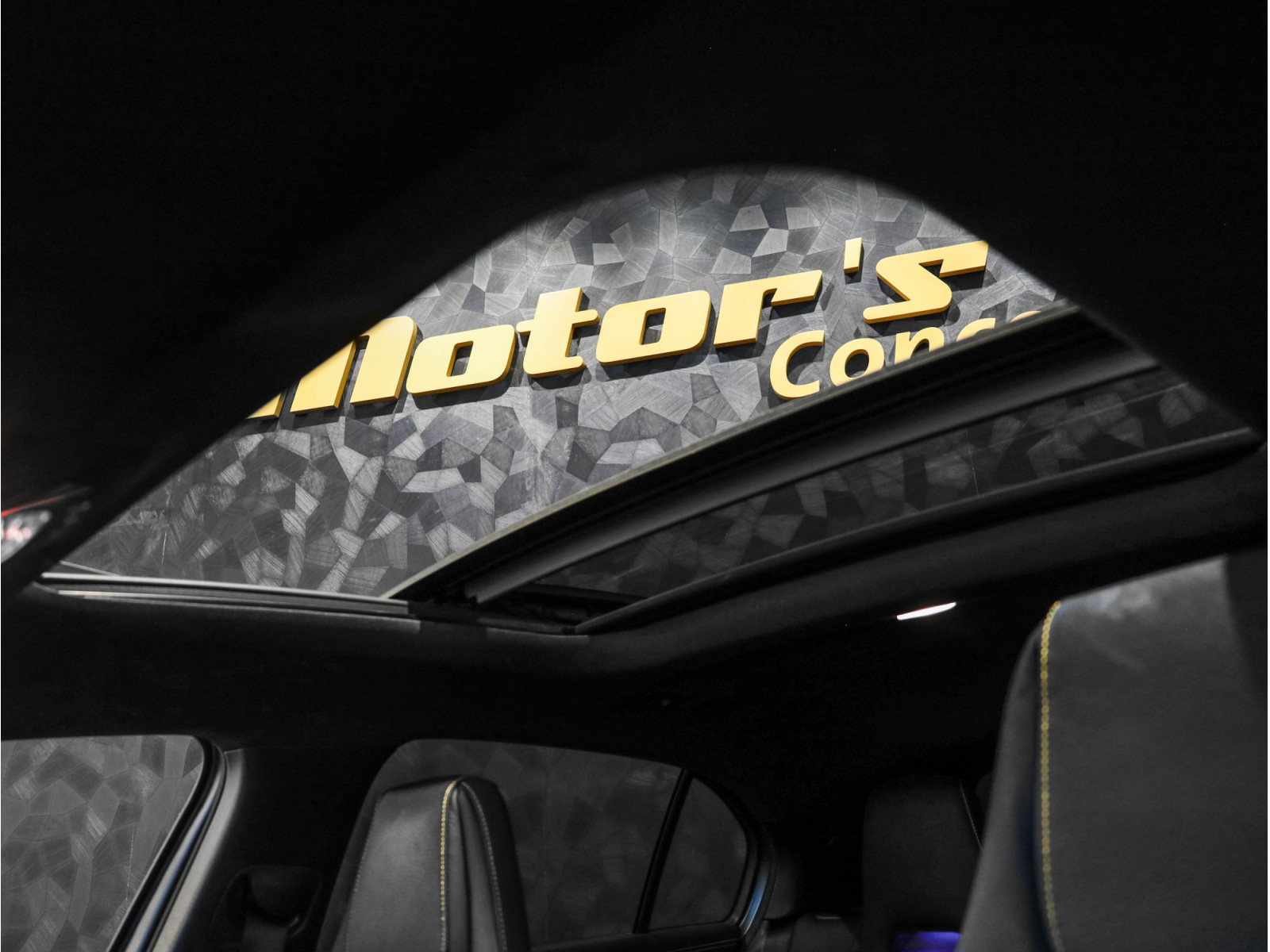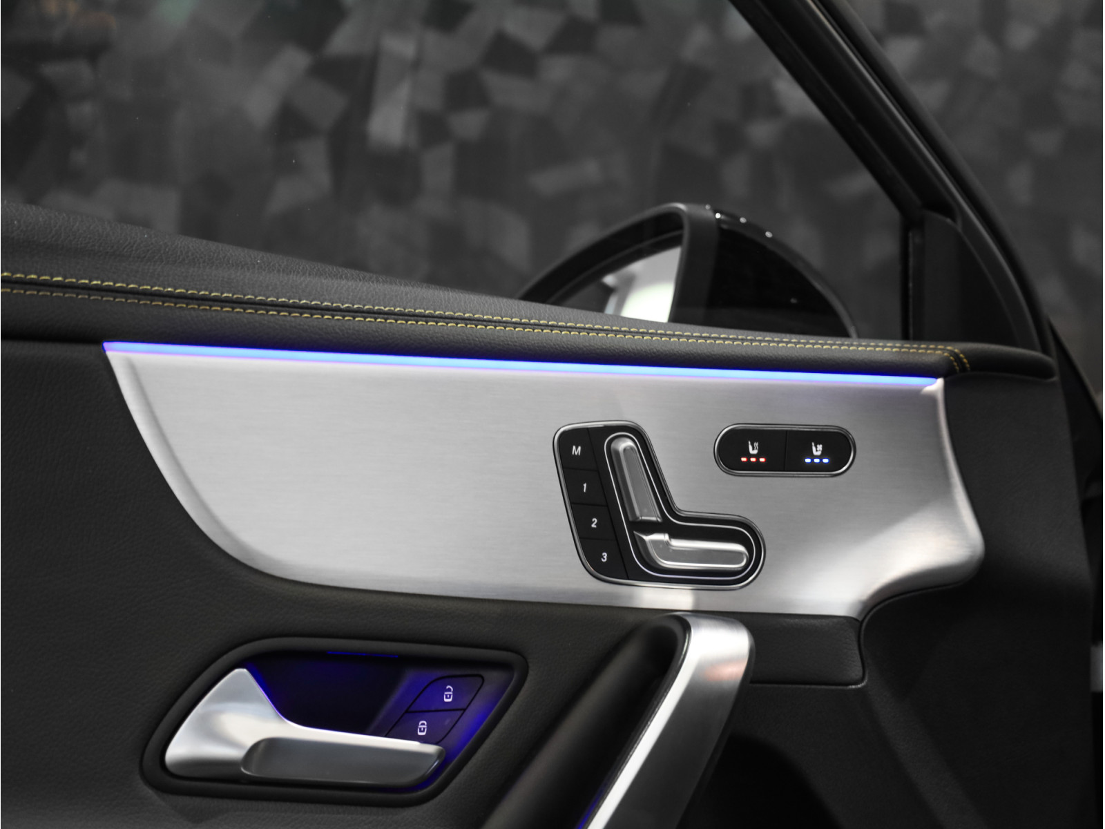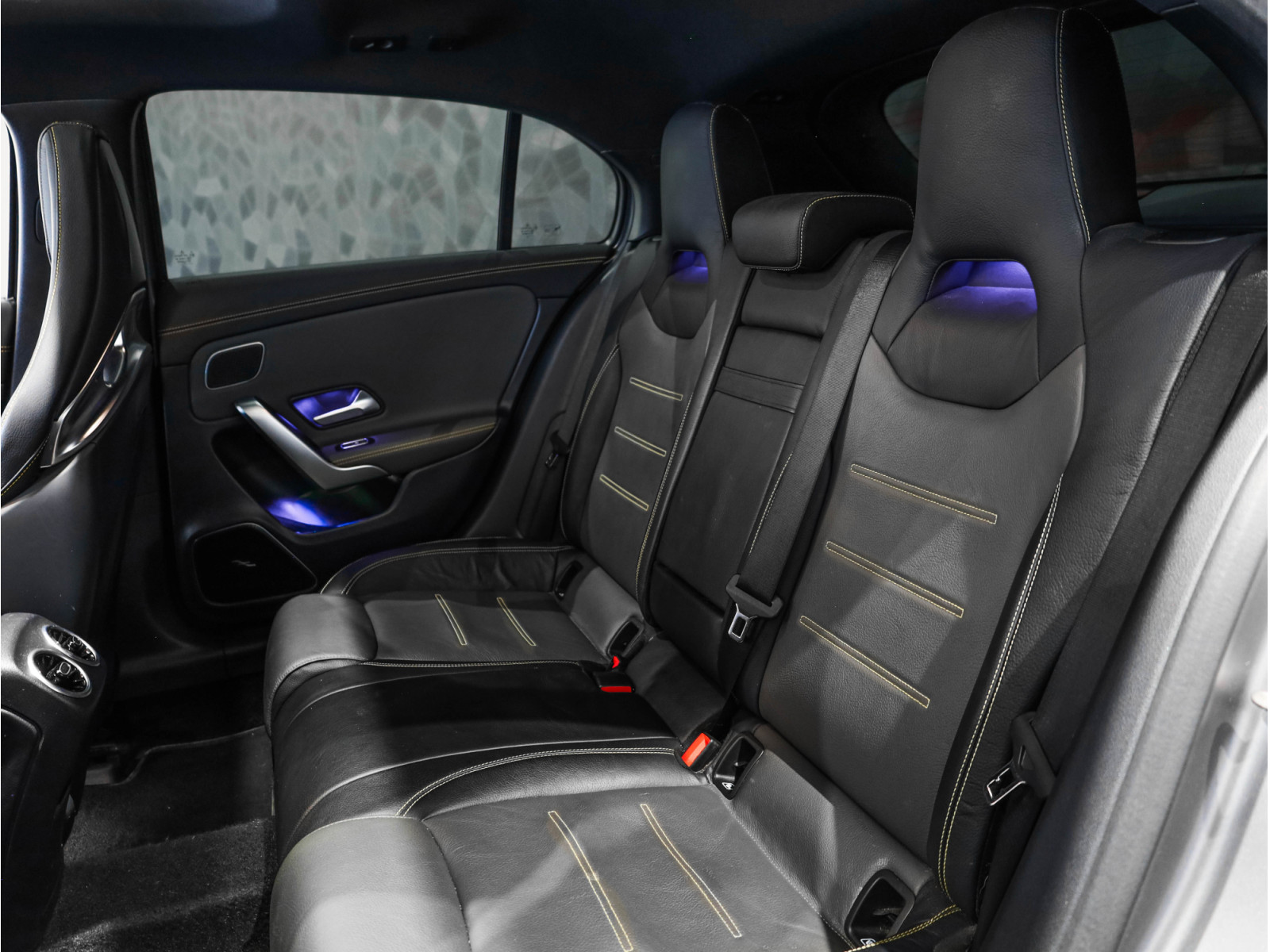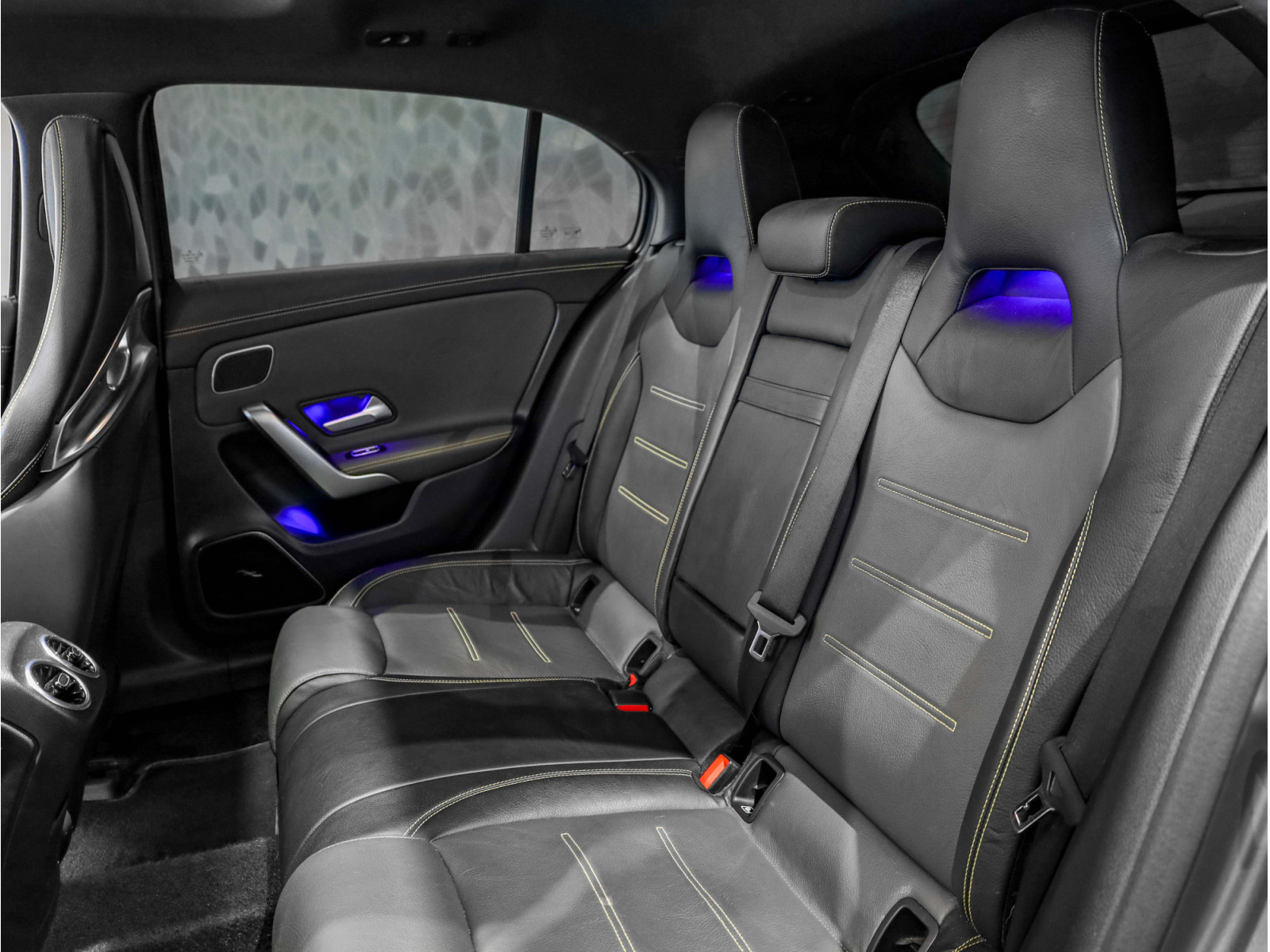 - Sellerie en cuir noir avec surpiqûres et inserts cuir jaunes