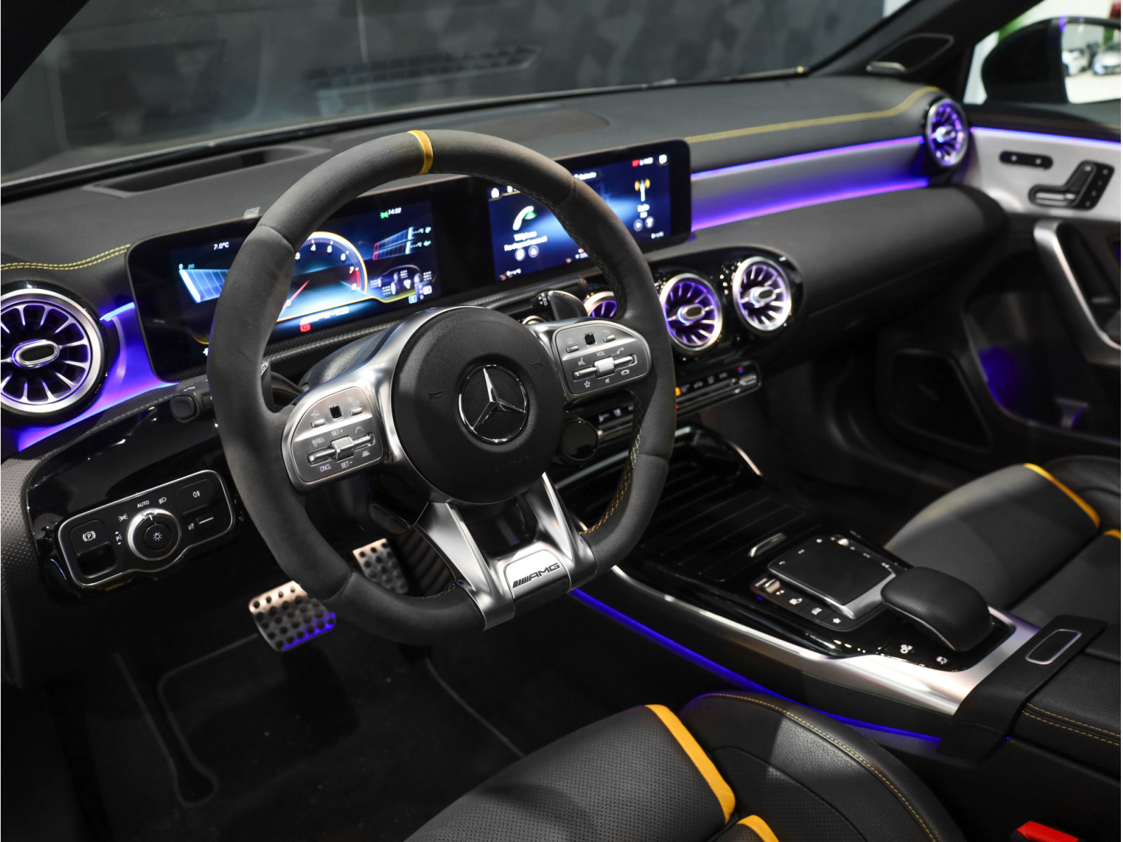 - Volant AMG en alcantara et surpiqûres jaunes