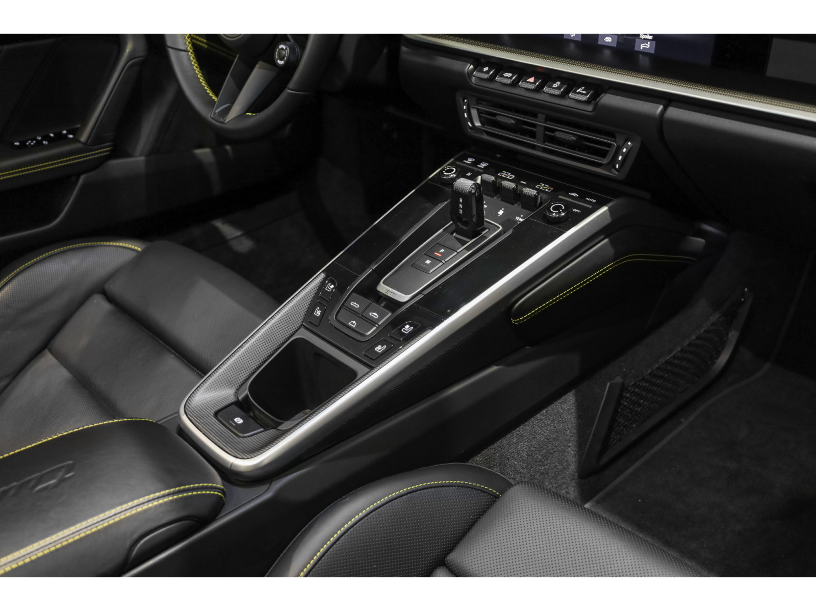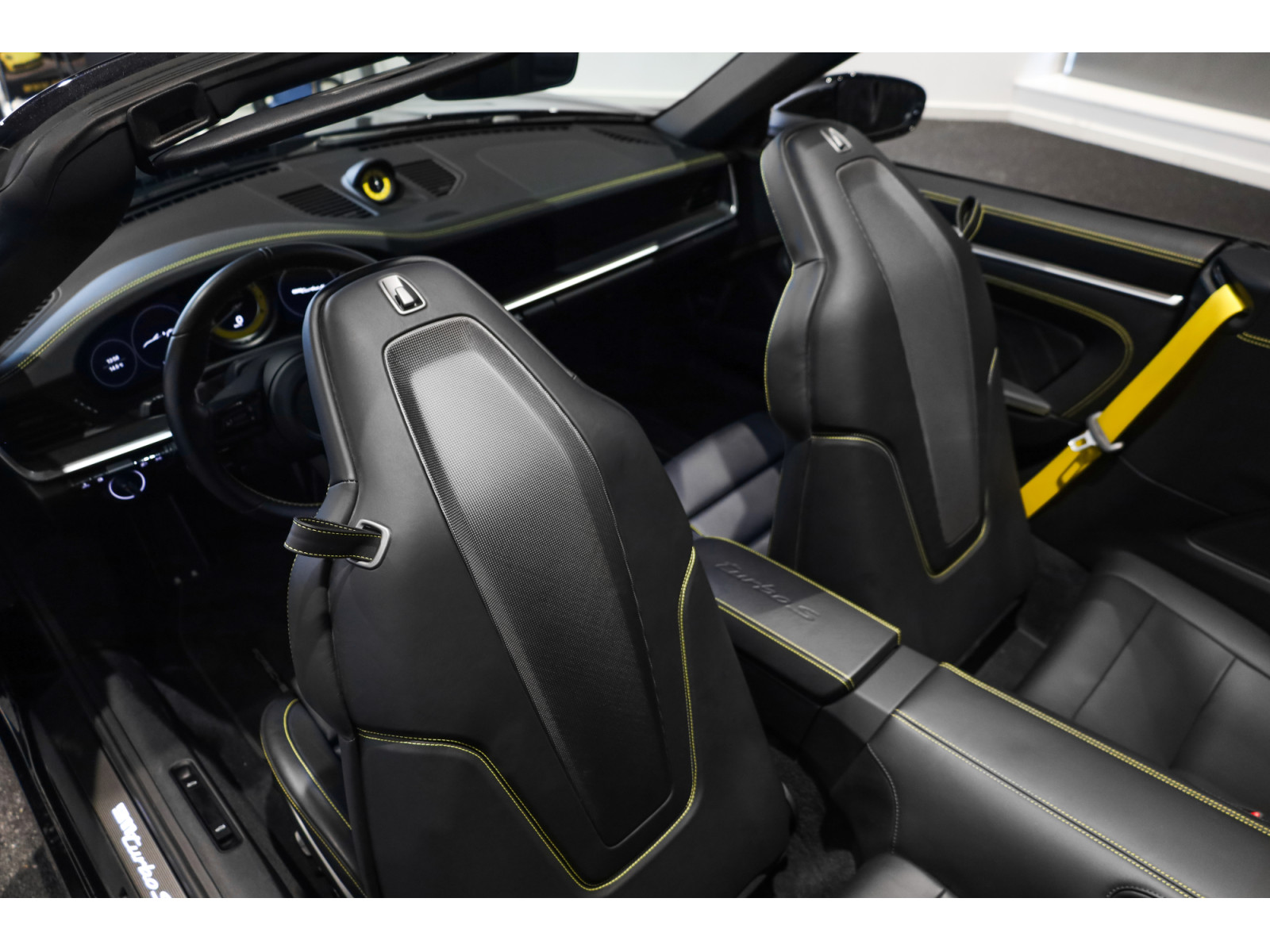 - Dossiers des sièges en cuir surpiqués jaune