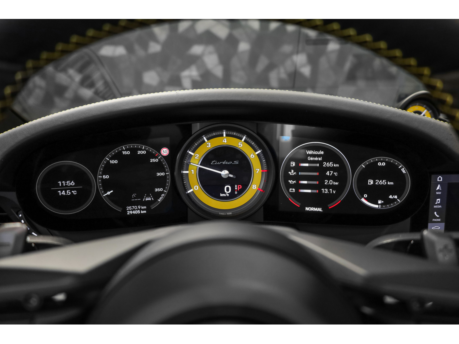- Fonds du compte-tour et chronomètre en Jaune Racing