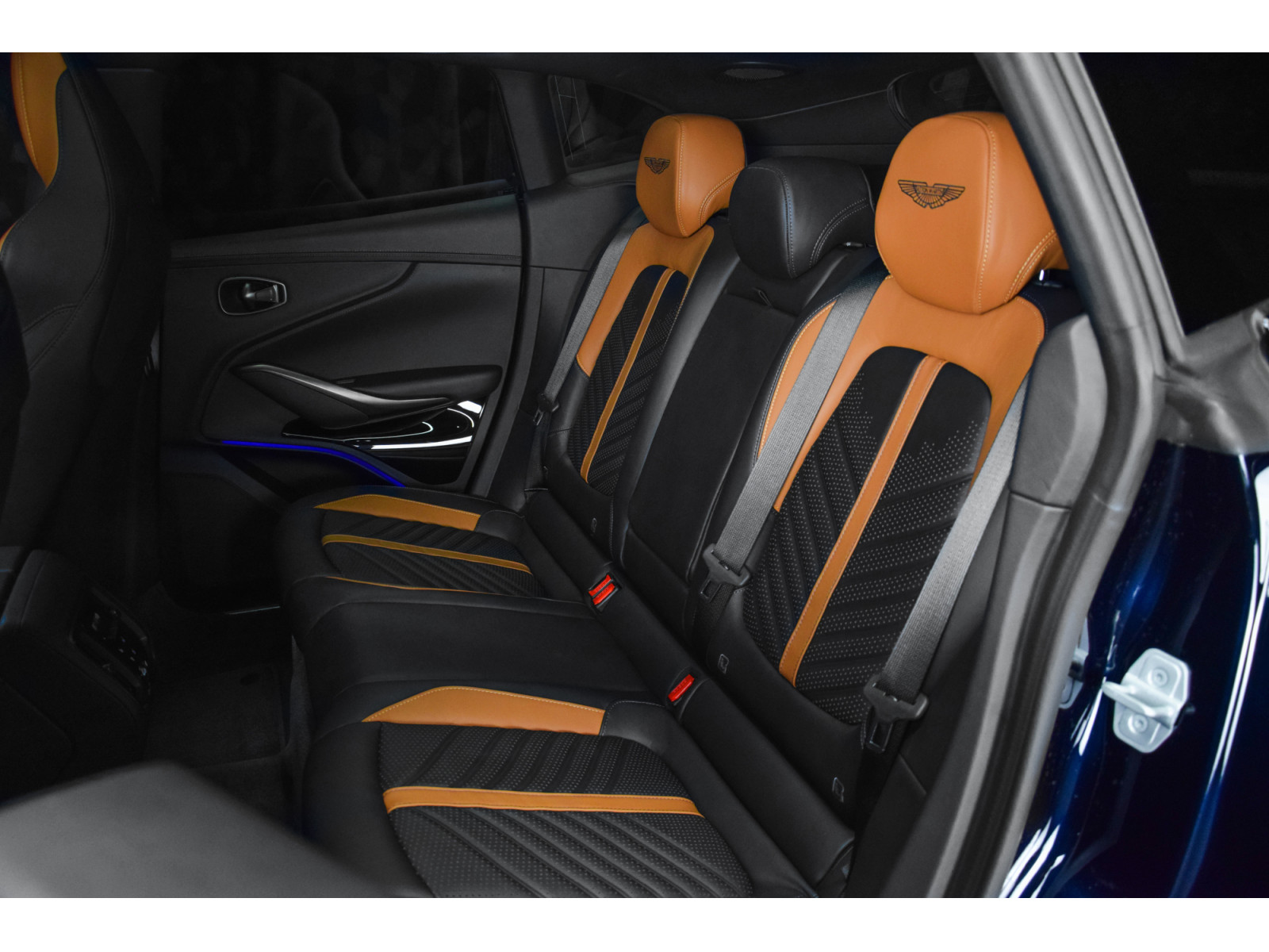 - Logos Aston Martin brodés sur les sièges