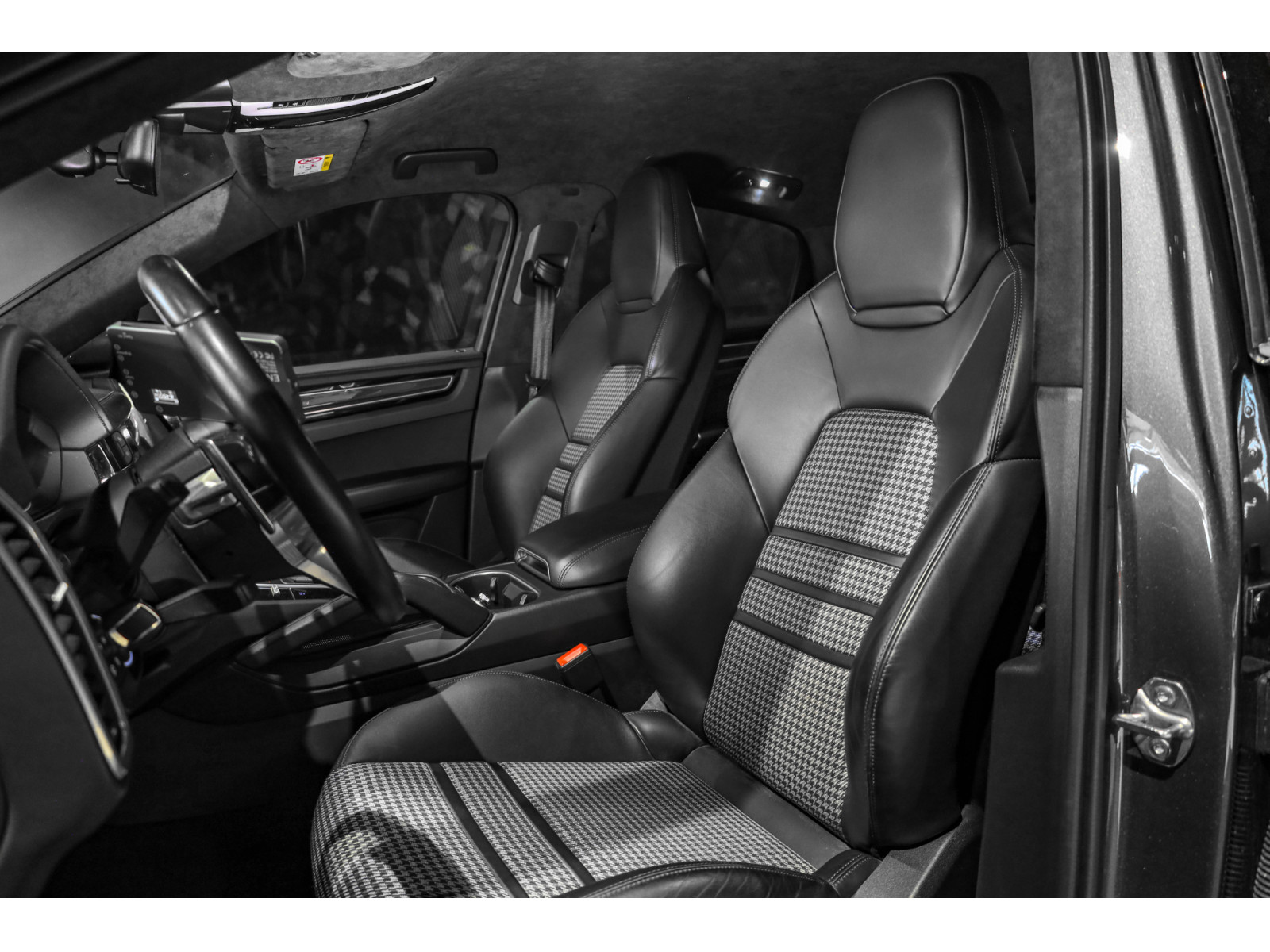 - Sellerie intérieur en cuir partiel noir / Pied-de-poule noir