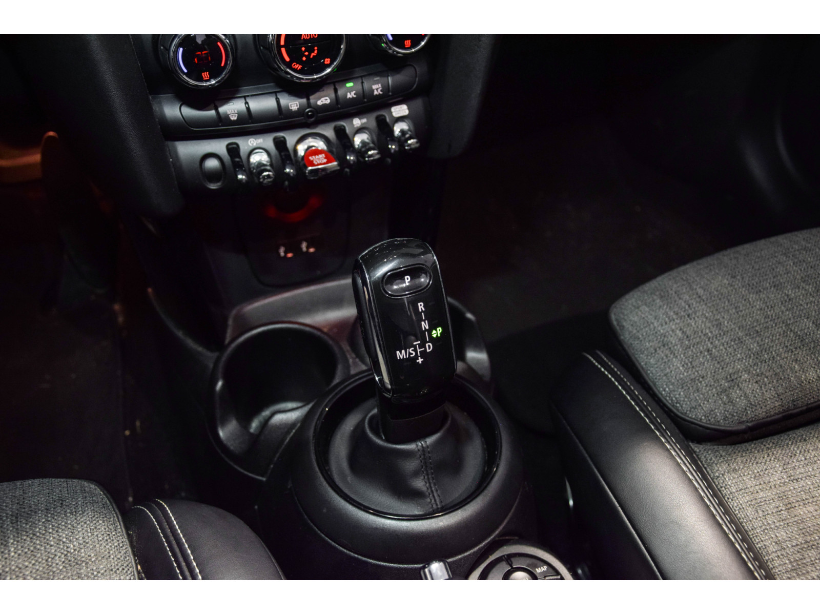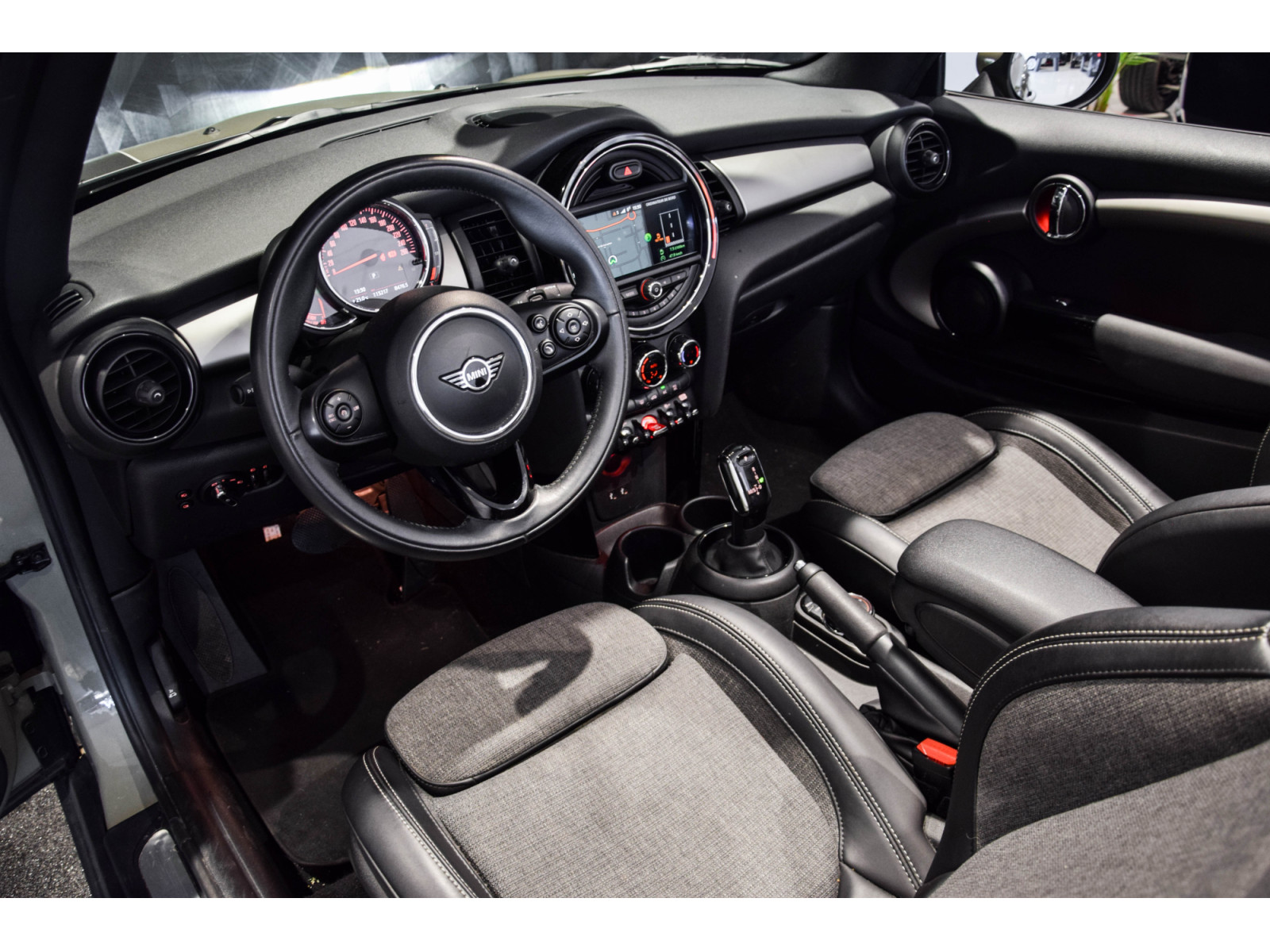 - Sellerie en tissu gris / cuir noir