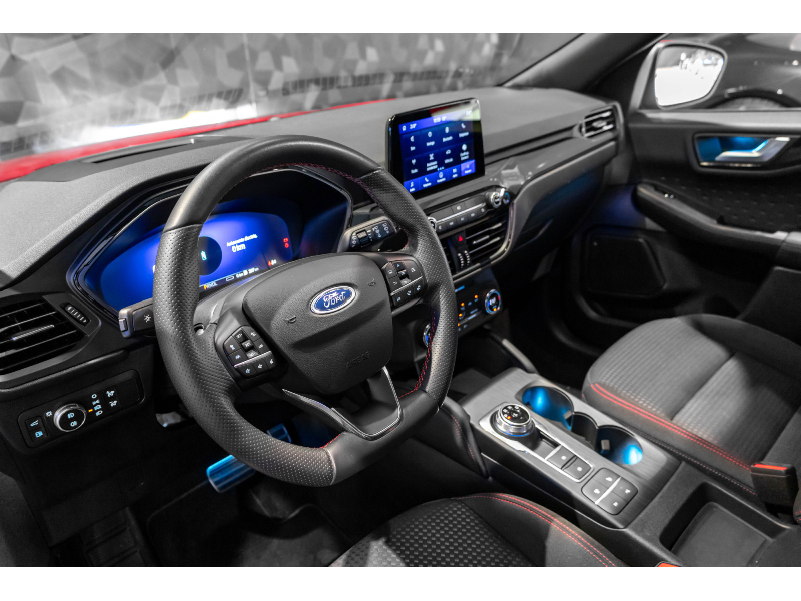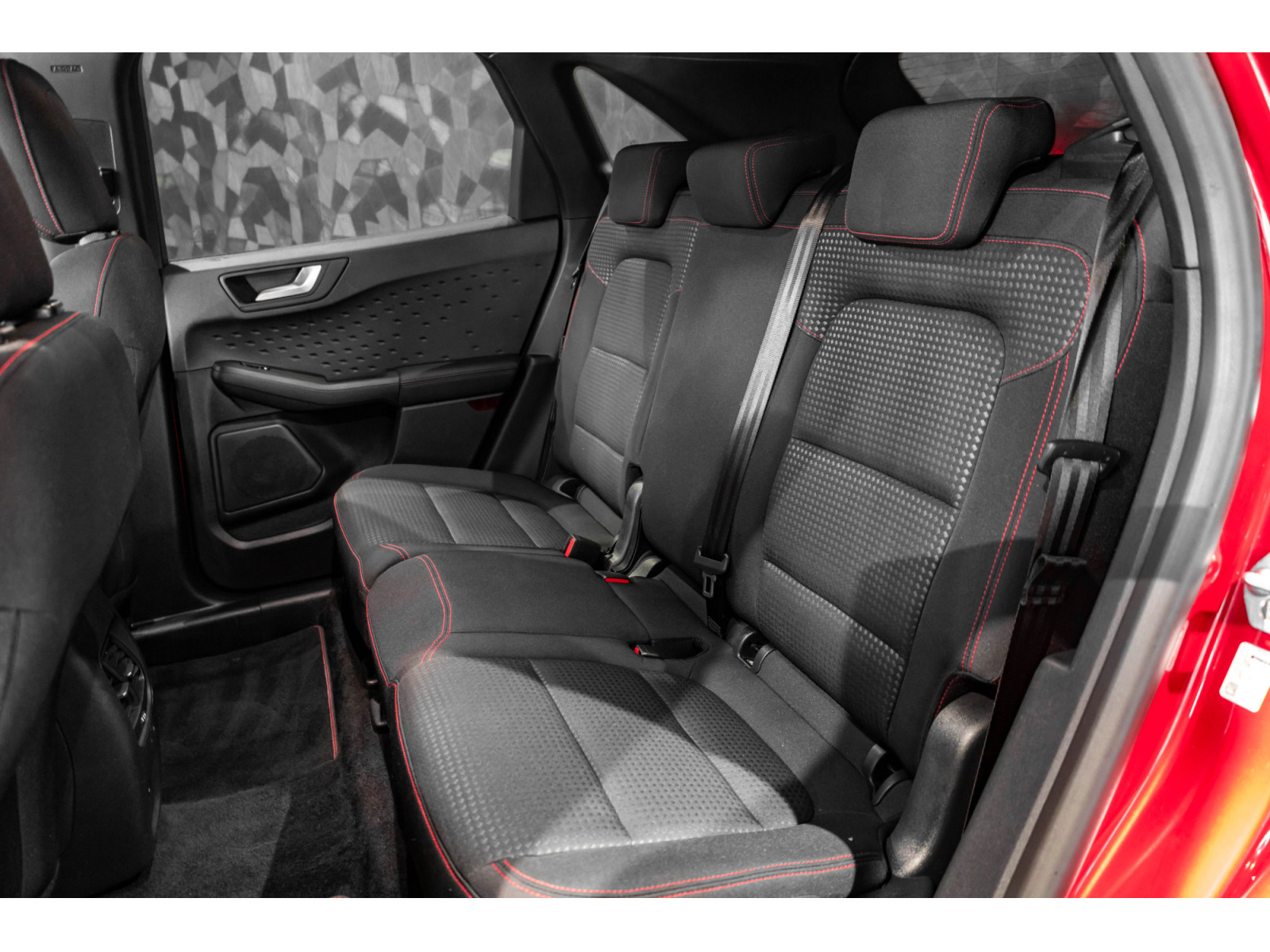 - Sellerie en tissu avec surpiqûres rouges