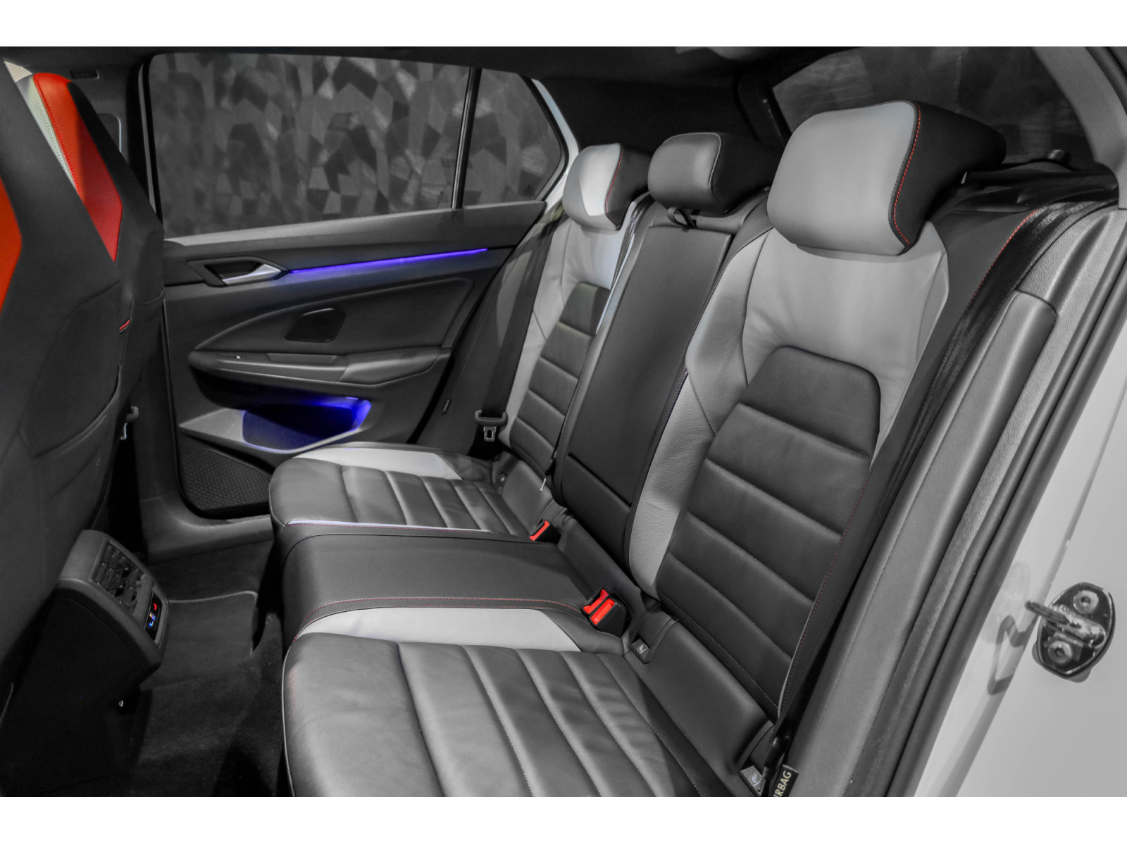 - Sellerie en cuir noir et gris avec surpiqûres rouges